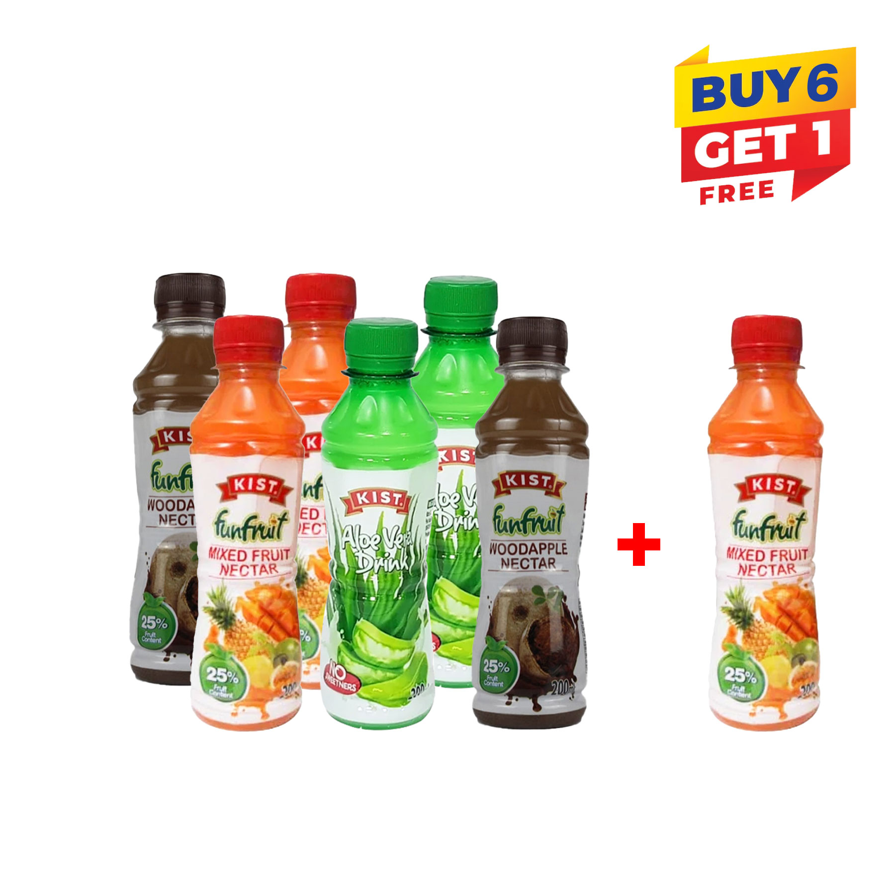 KIST 200ML Pack of 6 (2 Aloe Vera + 2 Wood Apple +2 Mix Fruit +1 Free)