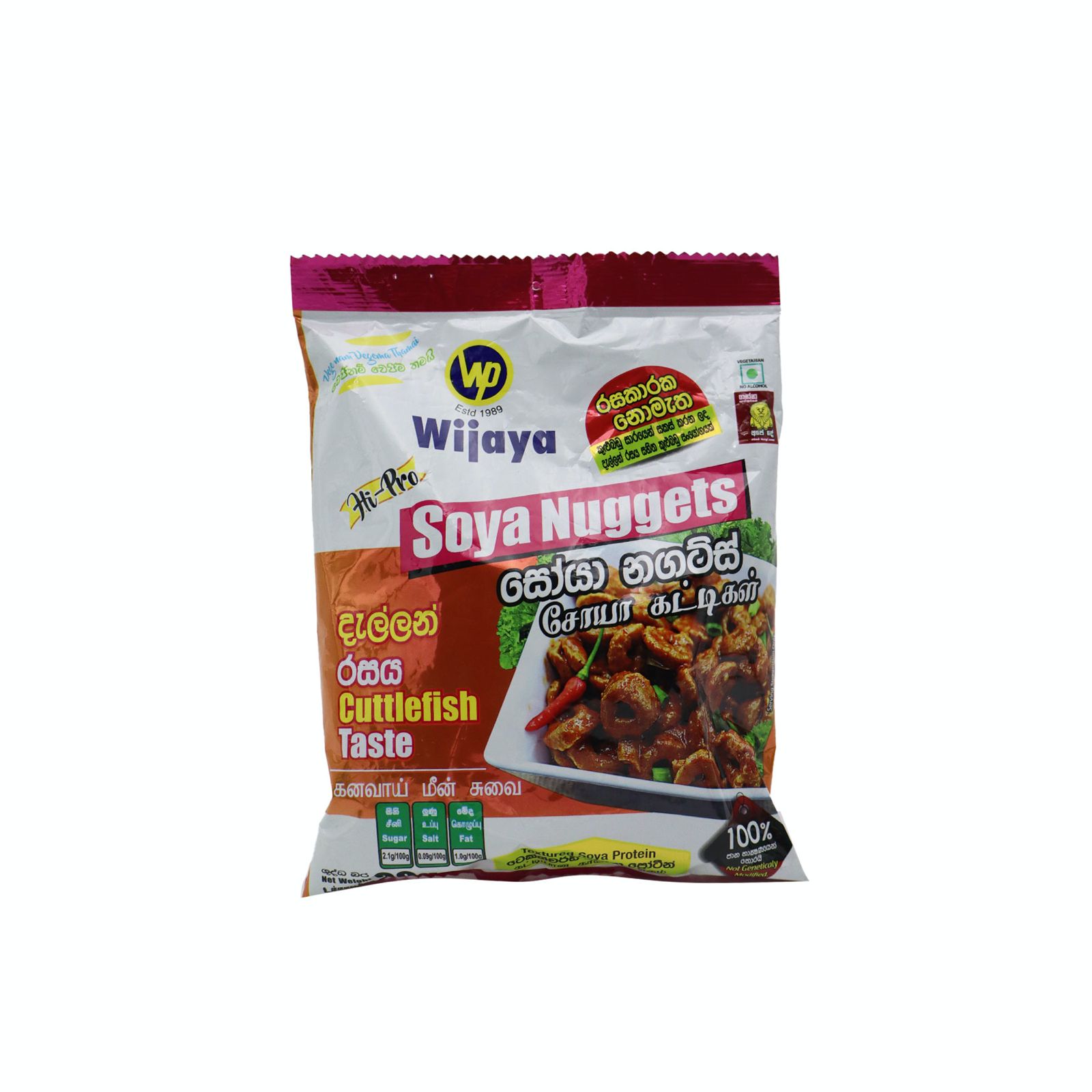 Enjoy the ever popular "Wijaya Soya Nuggets Curry Taste" preparation of the Sri Lankan cuisine in ready to cook soy nuggets with the Spices sachet, to get it right. The texture of cooked soya chunks is like cooked soft meat; though flavourless, this spongy chunk excellently absorbs the flavour of the food it is fused with.
